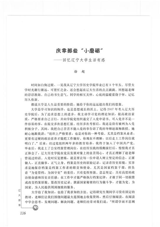 徐超(07级硕士)-《庆幸那些“小磨砺”—回忆辽宁大学生活有感》