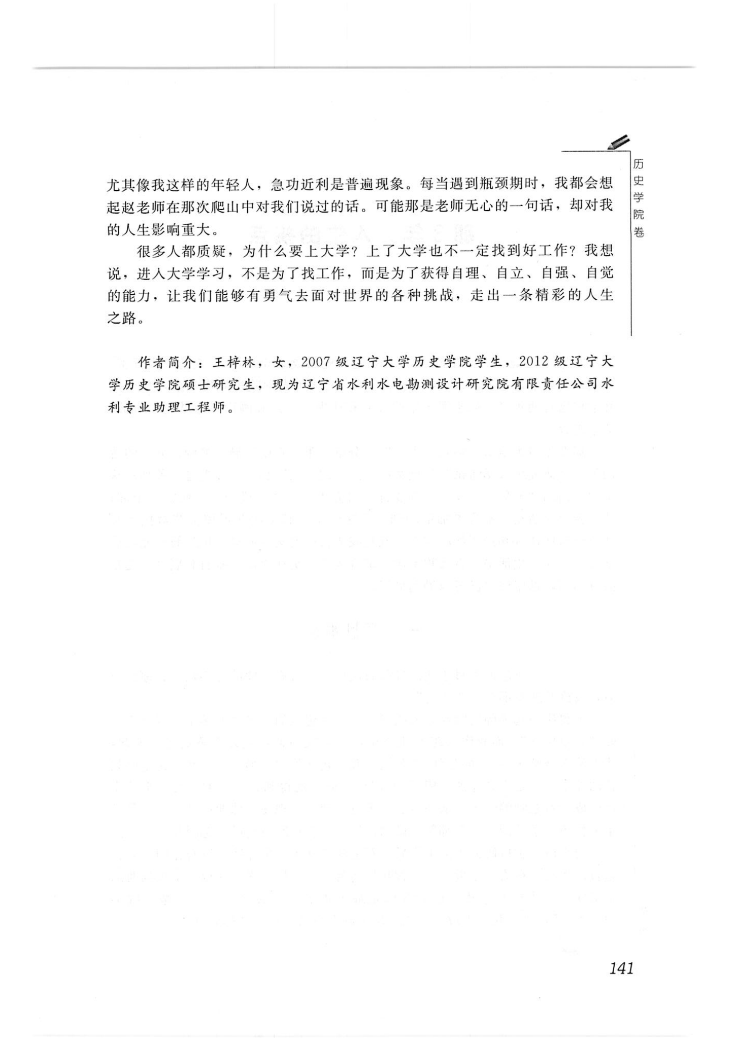 王梓林-(07级本科)-《回首亦是情—忆伴我成长筑梦的良师益友们〉