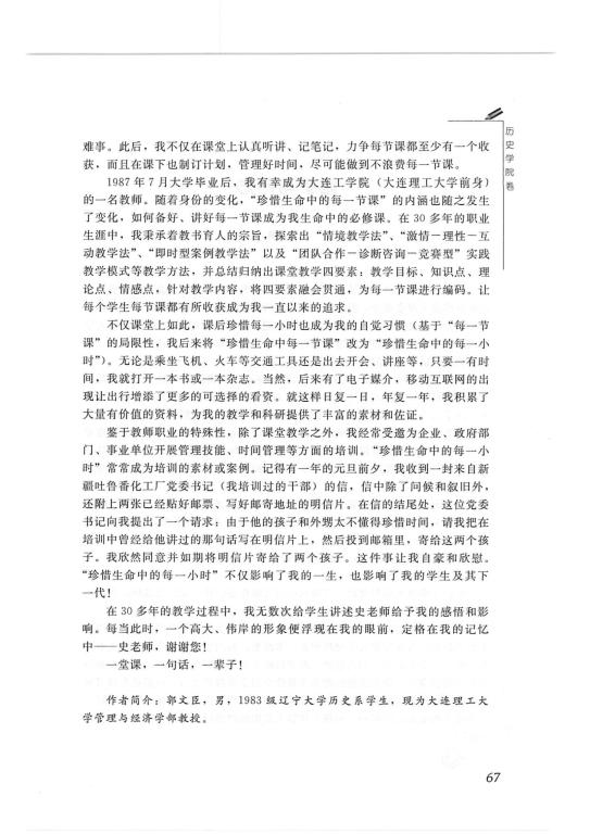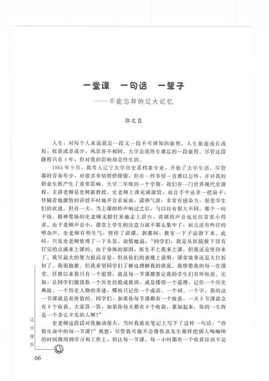 郭文臣(83级本科)-《一堂课 一句话 一辈子--不能忘却的辽大记忆》